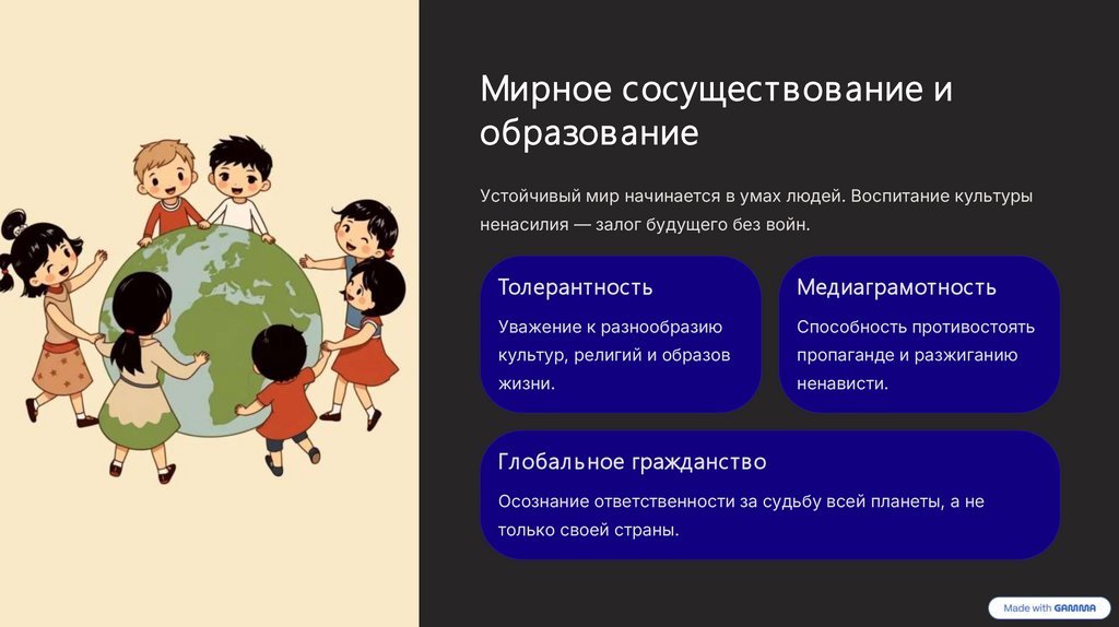 Устойчивый мир начинается в умах людей. Воспитание культуры
