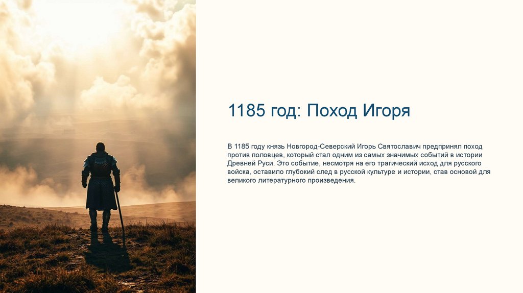 1185 год: Поход ИгоряВ 1185 году князь Новгород-Северский Игорь Святославич предпринял поход