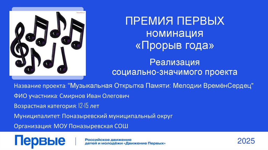 Название проекта: "Музыкальная Открытка Памяти: Мелодии ВремёнСердец"ФИО участника: Смирнов Иван Олегович