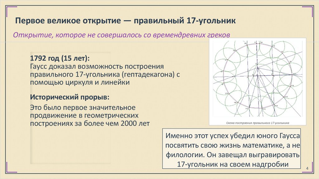 Первое великое открытие — правильный 17-угольникОткрытие, которое не совершалось со времендревних греков