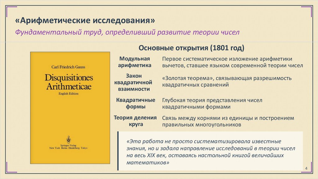 «Арифметические исследования»Фундаментальный труд, определивший развитие теории чисел