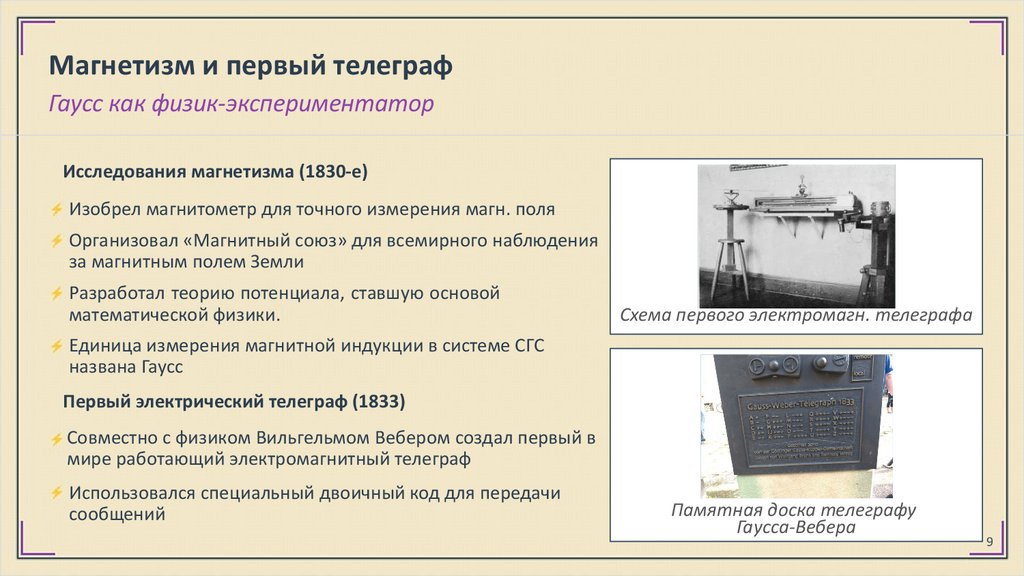 Магнетизм и первый телеграфГаусс как физик-экспериментатор