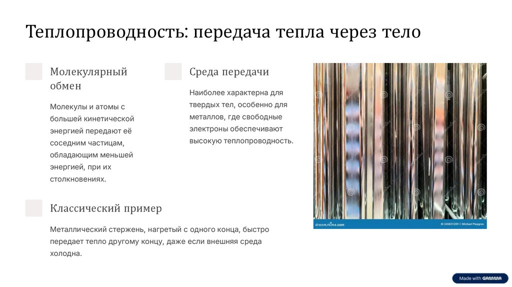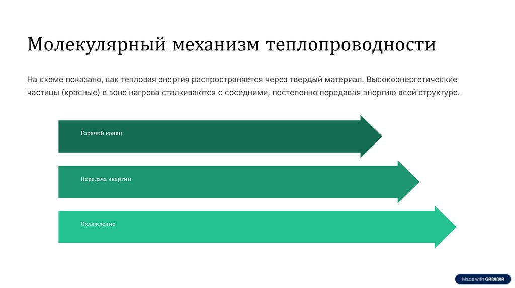 Молекулярный механизм теплопроводностиНа схеме показано, как тепловая энергия распространяется через твердый материал. Высокоэнергетические
