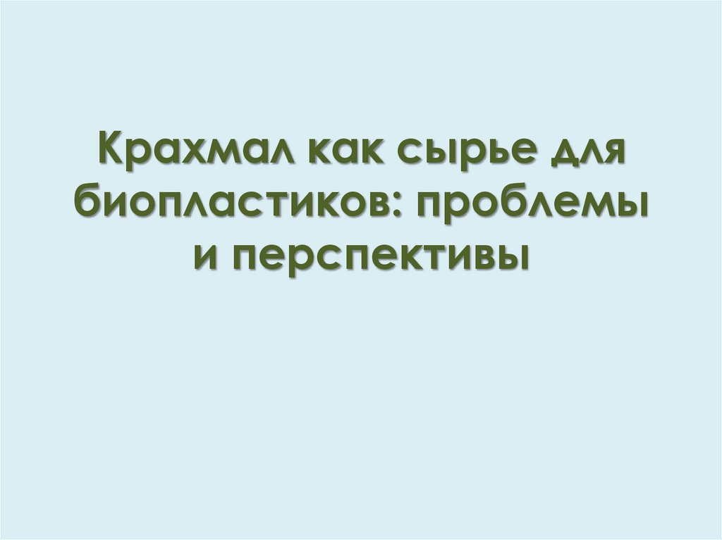 1. Крахмал как сырье для биопластиков: проблемы и перспективы