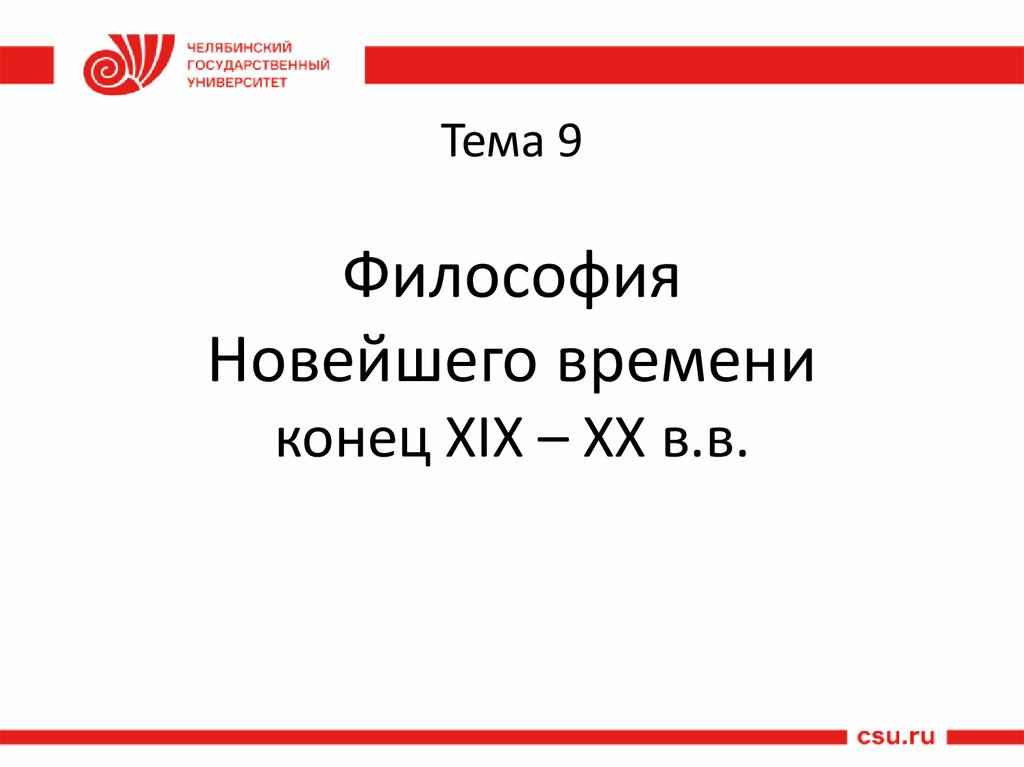 1. Тема 9 Философия Новейшего времени конец XIX – XX в.в.