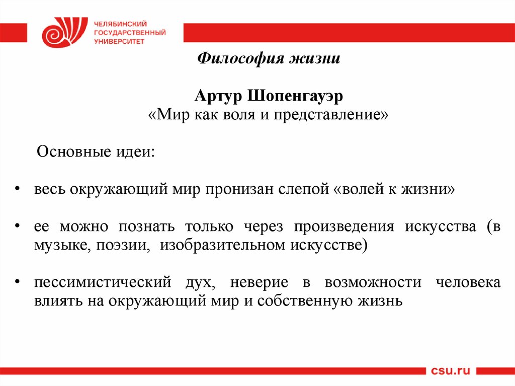 • весь окружающий мир пронизан слепой «волей к жизни»