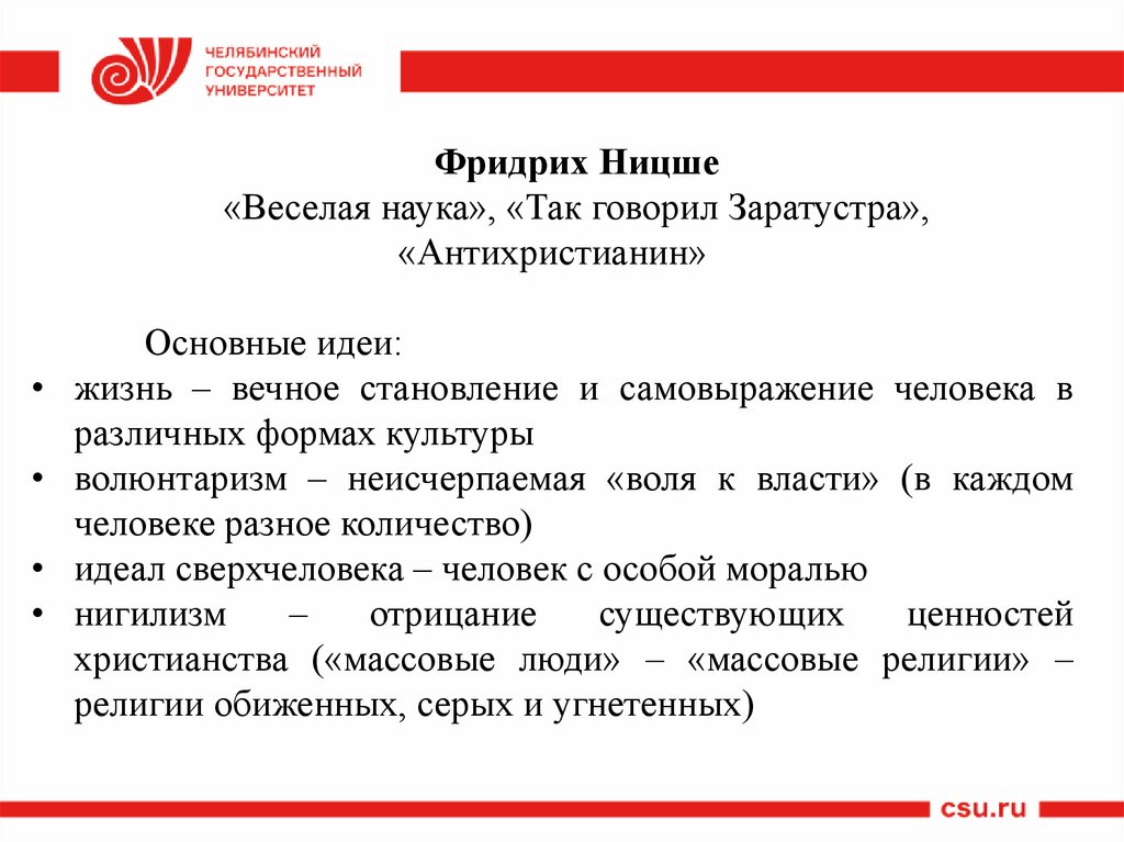 Фридрих Ницше«Веселая наука», «Так говорил Заратустра»,