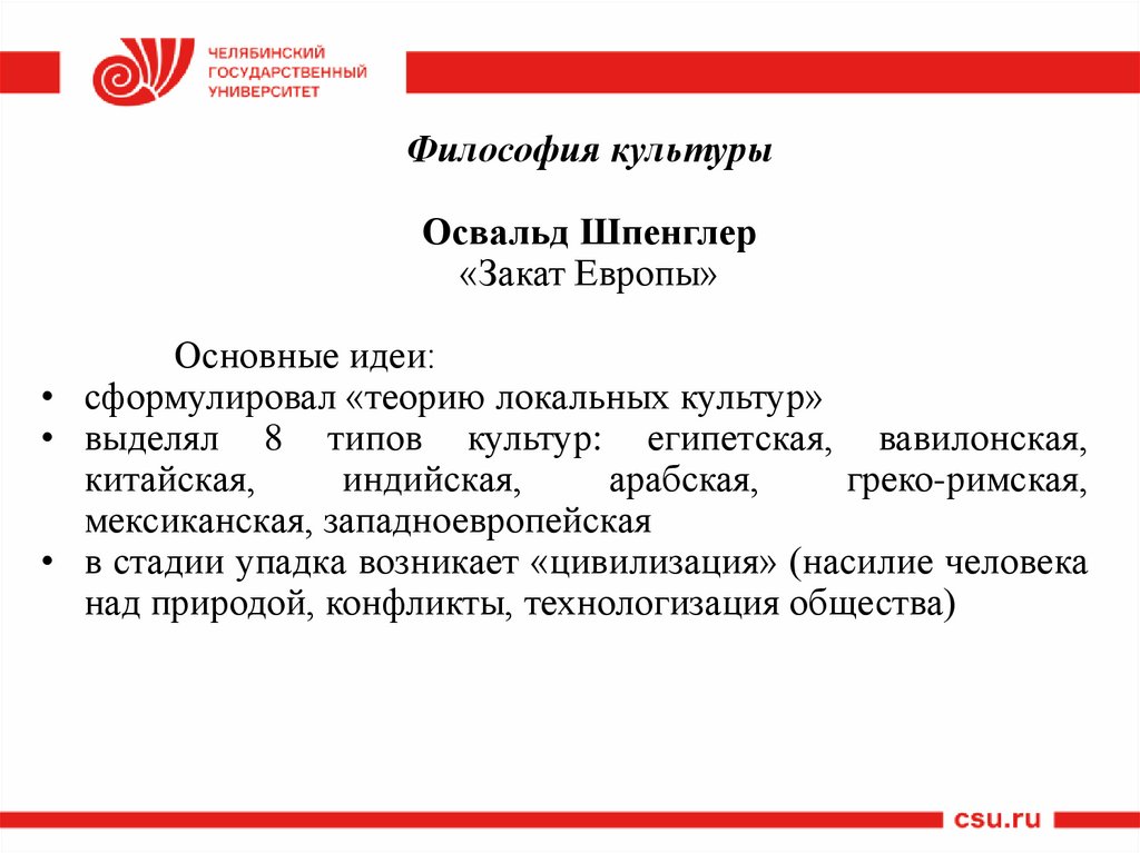 • в стадии упадка возникает «цивилизация» (насилие человека