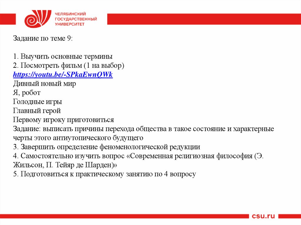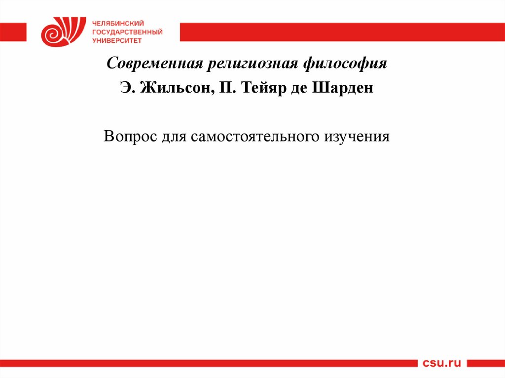 4. Самостоятельно изучить вопрос «Современная религиозная философия (Э.