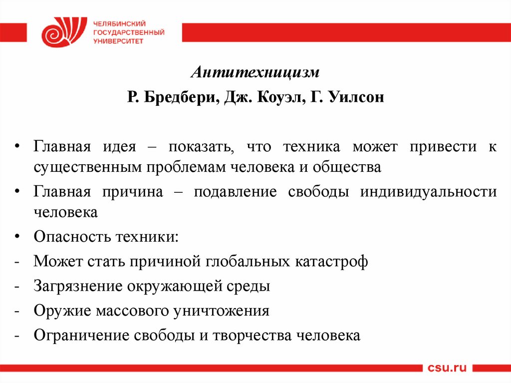 АнтитехницизмР. Бредбери, Дж. Коуэл, Г. Уилсон