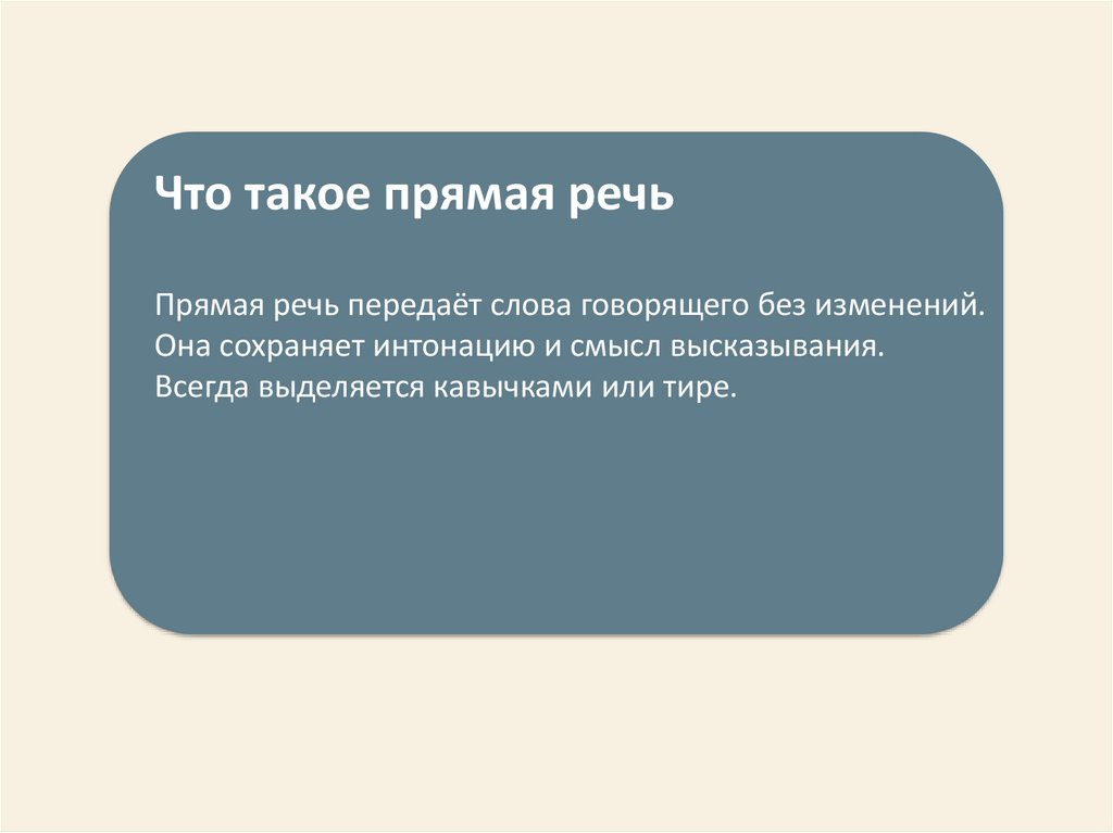 Что такое прямая речьПрямая речь передаёт слова говорящего без изменений.