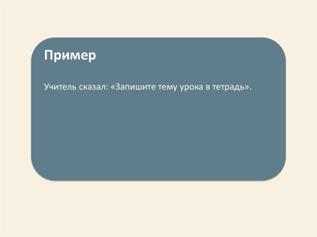 ПримерУчитель сказал: «Запишите тему урока в тетрадь».