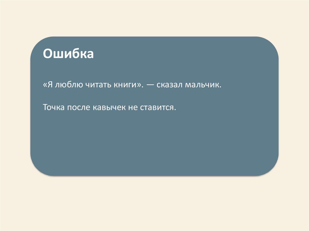 Ошибка«Я люблю читать книги». — сказал мальчик.