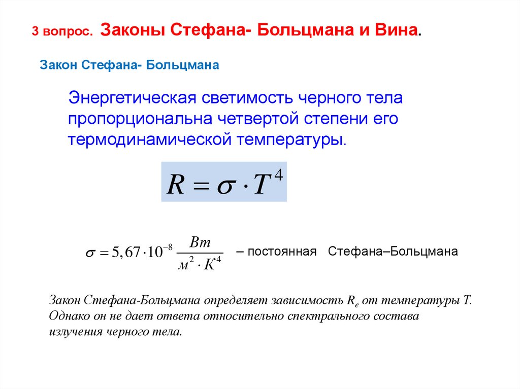 3 вопрос. Законы Стефана- Больцмана и Вина.Закон Стефана- Больцмана