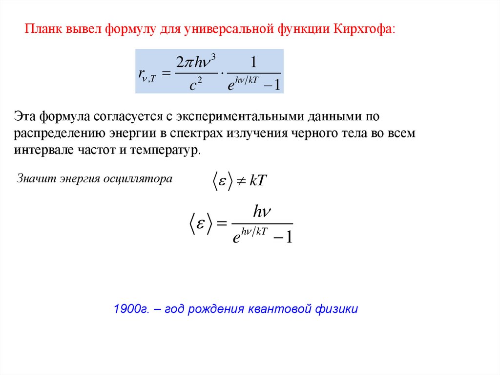 Планк вывел формулу для универсальной функции Кирхгофа:2 h 3