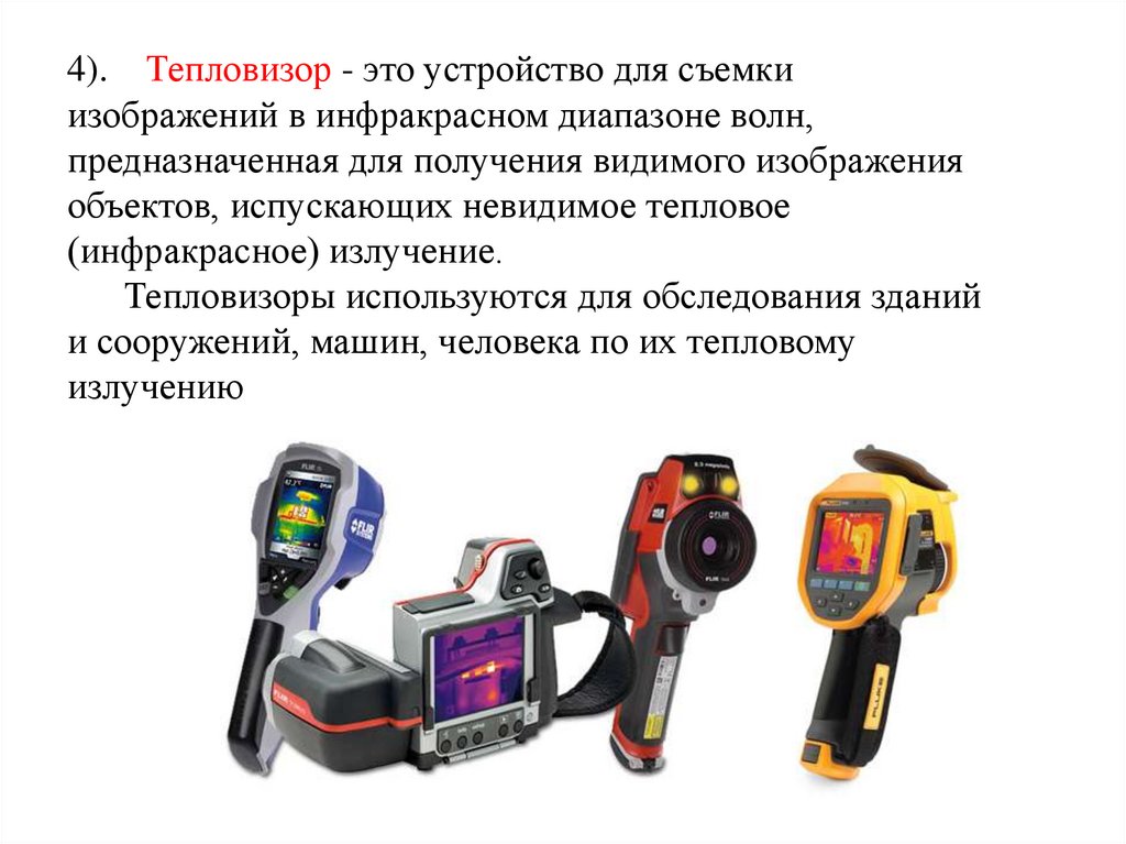 4). Тепловизор - это устройство для съемкиизображений в инфракрасном диапазоне волн,