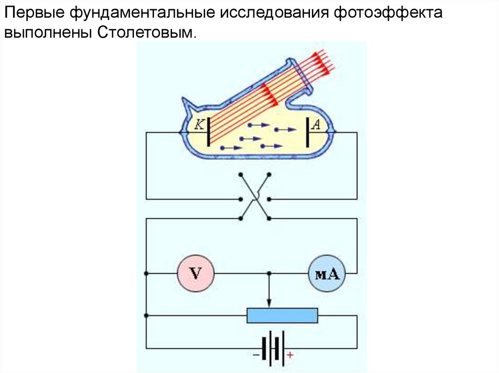 Первые фундаментальные исследования фотоэффектавыполнены Столетовым.