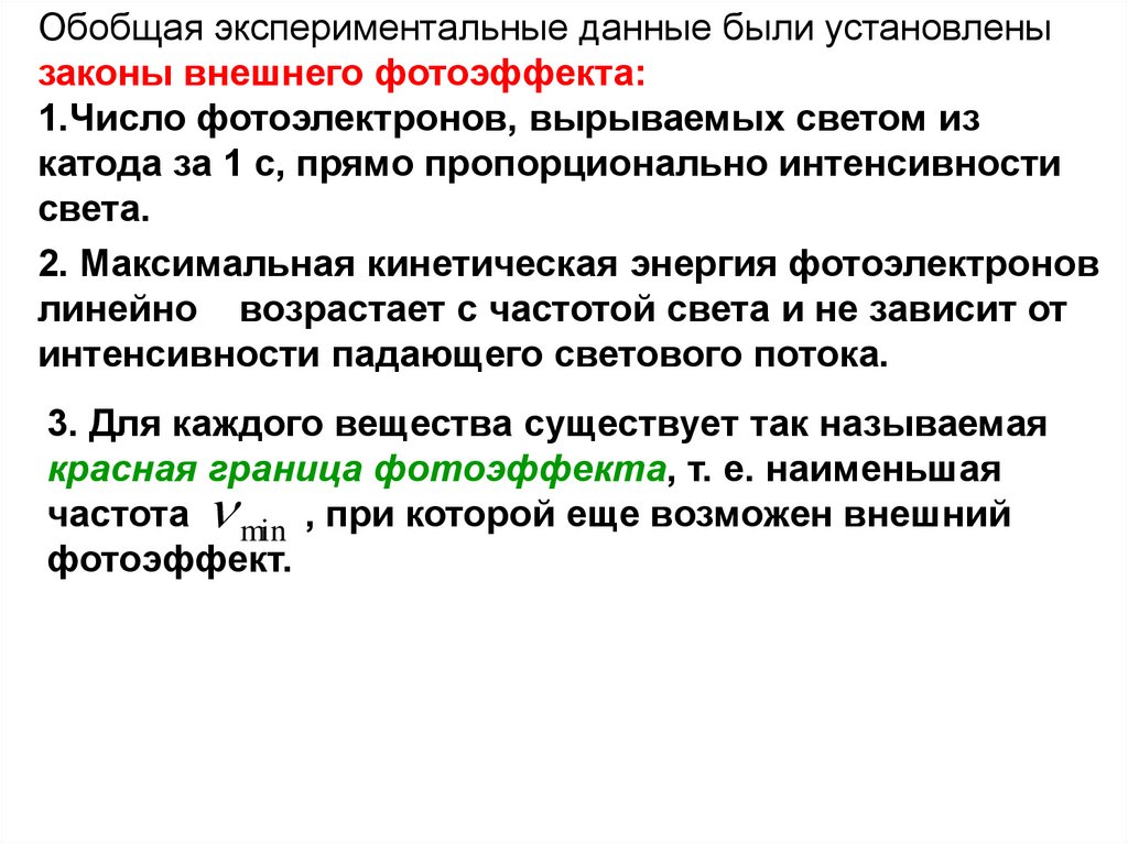 Обобщая экспериментальные данные были установленызаконы внешнего фотоэффекта:
