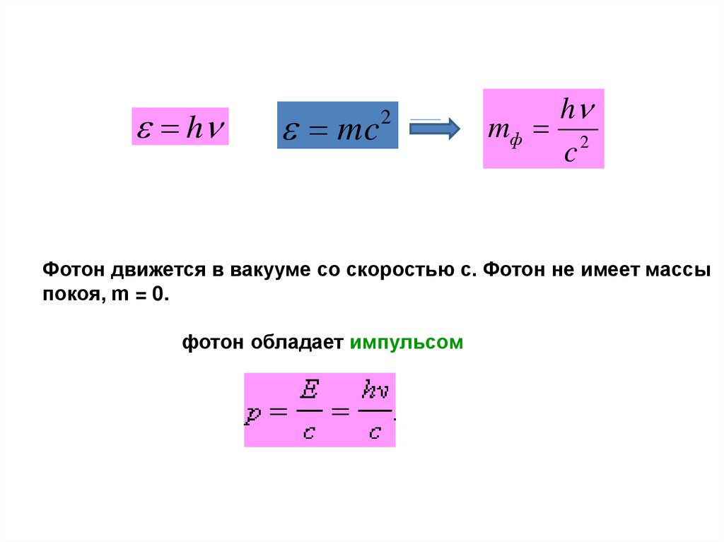 Фотон движется в вакууме со скоростью c. Фотон не имеет массы