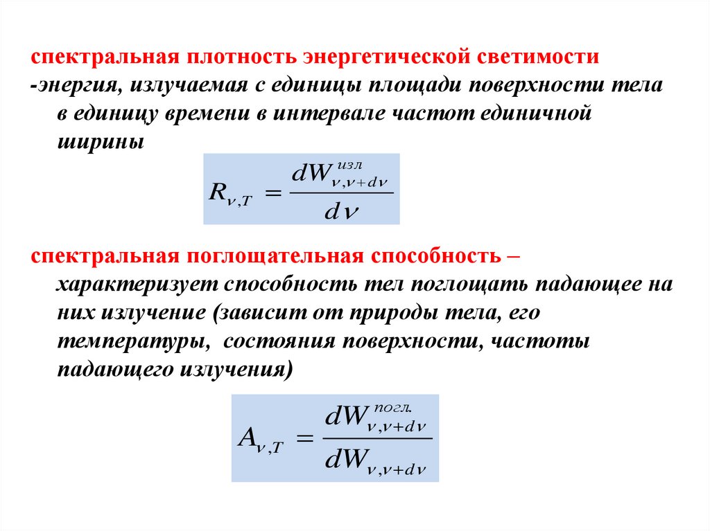 спектральная плотность энергетической светимости-энергия, излучаемая с единицы площади поверхности тела