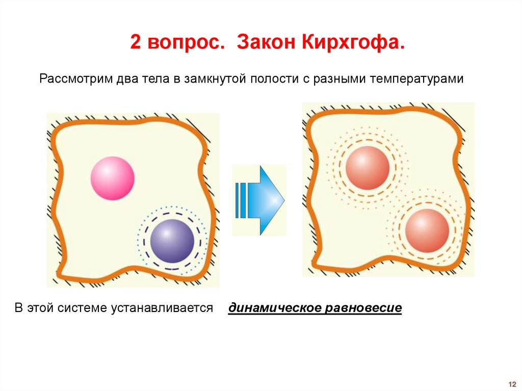 2 вопрос. Закон Кирхгофа.Рассмотрим два тела в замкнутой полости с разными температурами