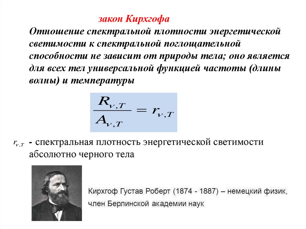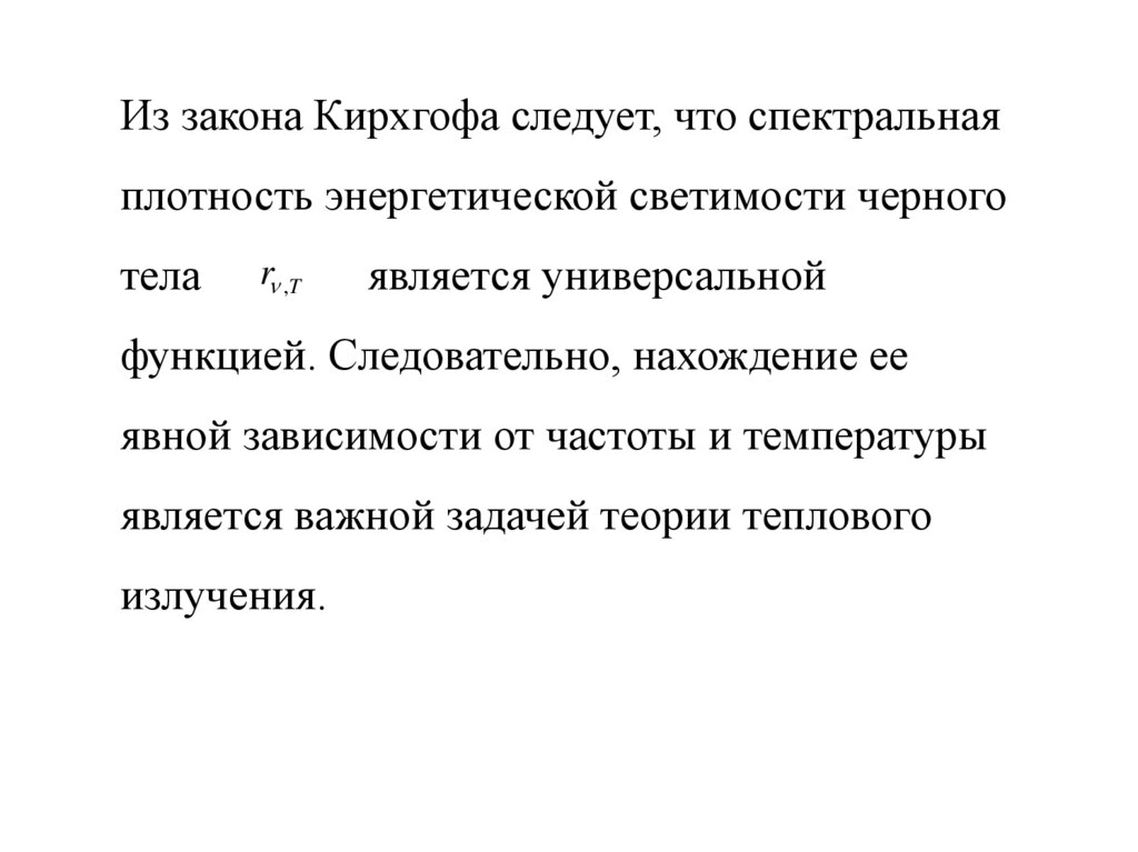 Из закона Кирхгофа следует, что спектральнаяплотность энергетической светимости черного