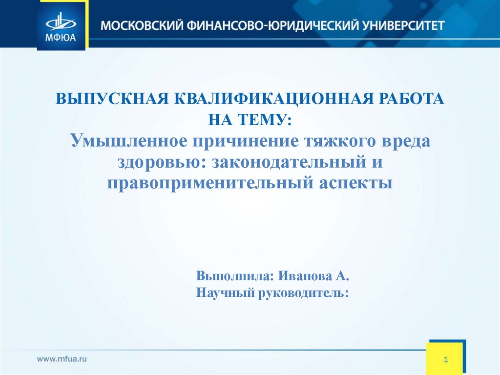 1. ВЫПУСКНАЯ КВАЛИФИКАЦИОННАЯ РАБОТА НА ТЕМУ: Умышленное причинение тяжкого вреда здоровью: законодательный и правоприменительный