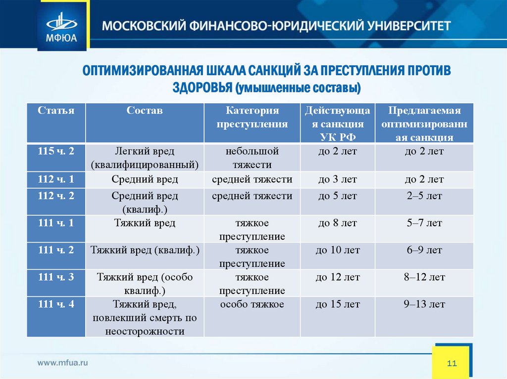 ОПТИМИЗИРОВАННАЯ ШКАЛА САНКЦИЙ ЗА ПРЕСТУПЛЕНИЯ ПРОТИВЗДОРОВЬЯ (умышленные составы)