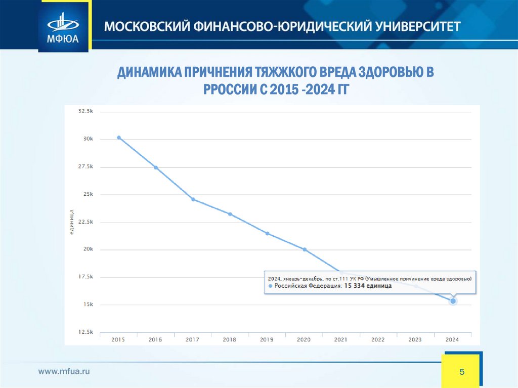 ДИНАМИКА ПРИЧНЕНИЯ ТЯЖЖКОГО ВРЕДА ЗДОРОВЬЮ ВРРОССИИ С 2015 -2024 ГГ