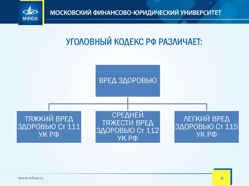 УГОЛОВНЫЙ КОДЕКС РФ РАЗЛИЧАЕТ:ВРЕД ЗДОРОВЬЮ