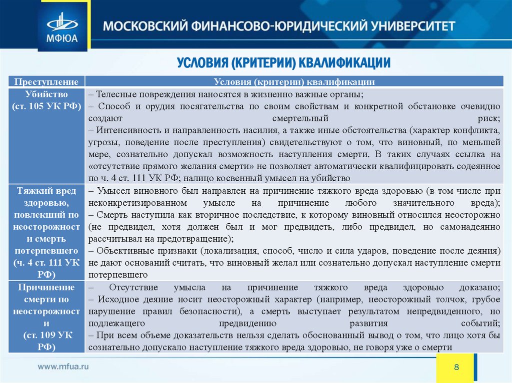 УСЛОВИЯ (КРИТЕРИИ) КВАЛИФИКАЦИИПреступление