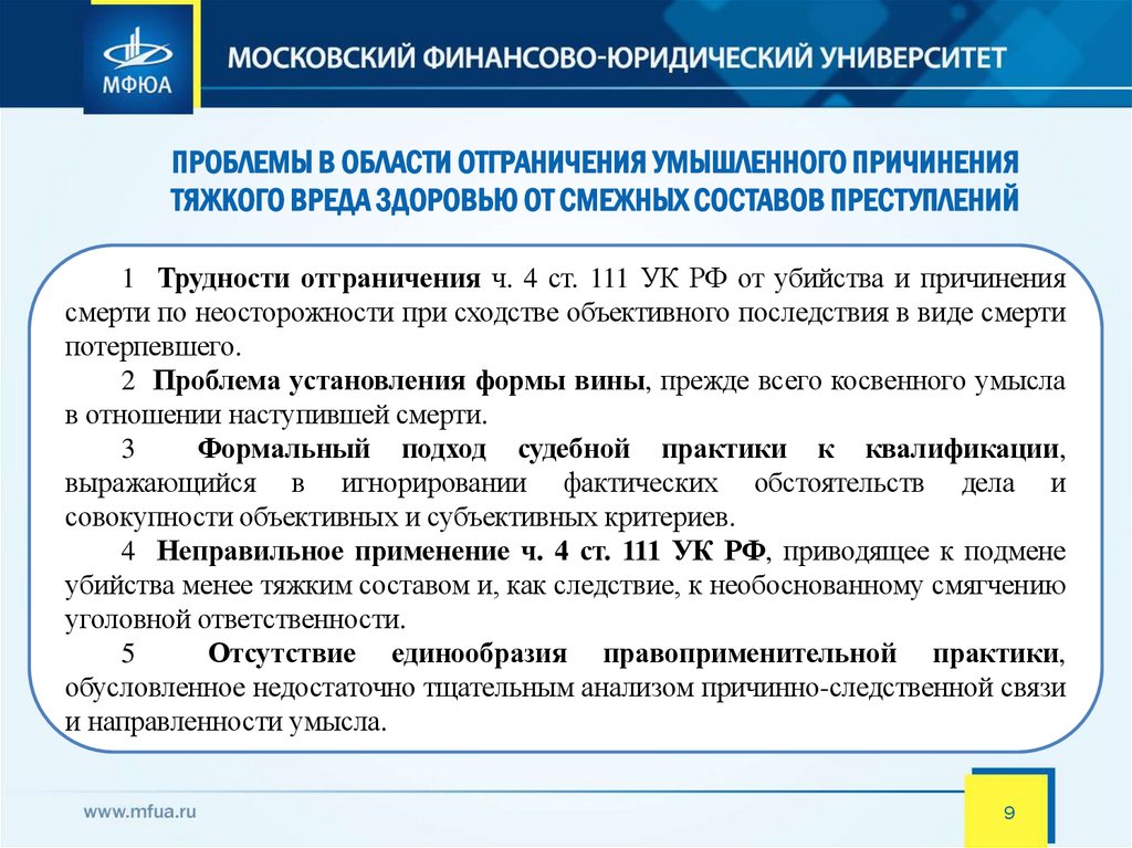 судебно-следственной практике при вменении ст. 111 УК РФ, и разработке