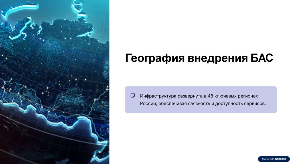 География внедрения БАСИнфраструктура развернута в 48 ключевых регионах