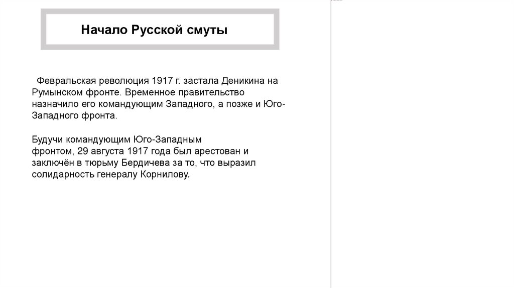 Начало Русской смутыФевральская революция 1917 г. застала Деникина на