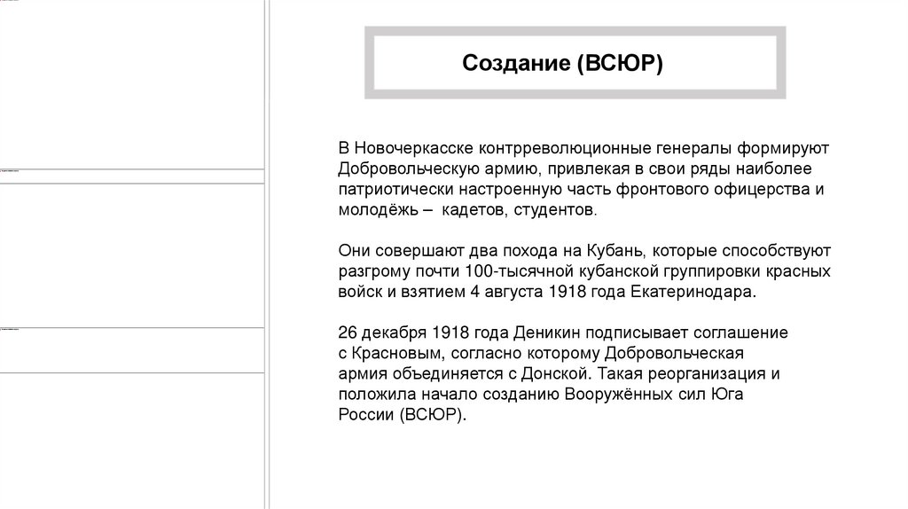Создание (ВСЮР)В Новочеркасске контрреволюционные генералы формируют