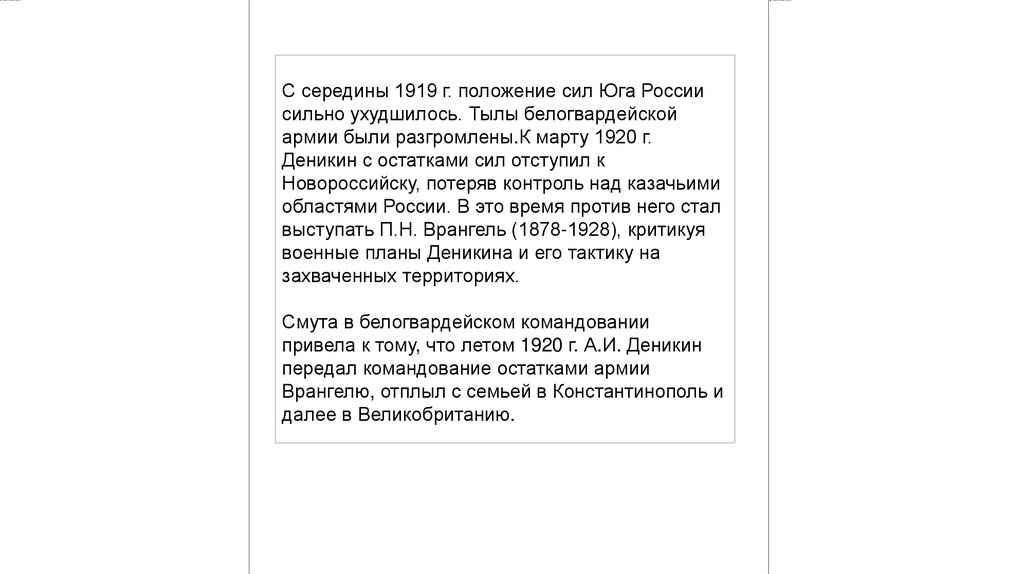 привела к тому, что летом 1920 г. А.И. Деникин