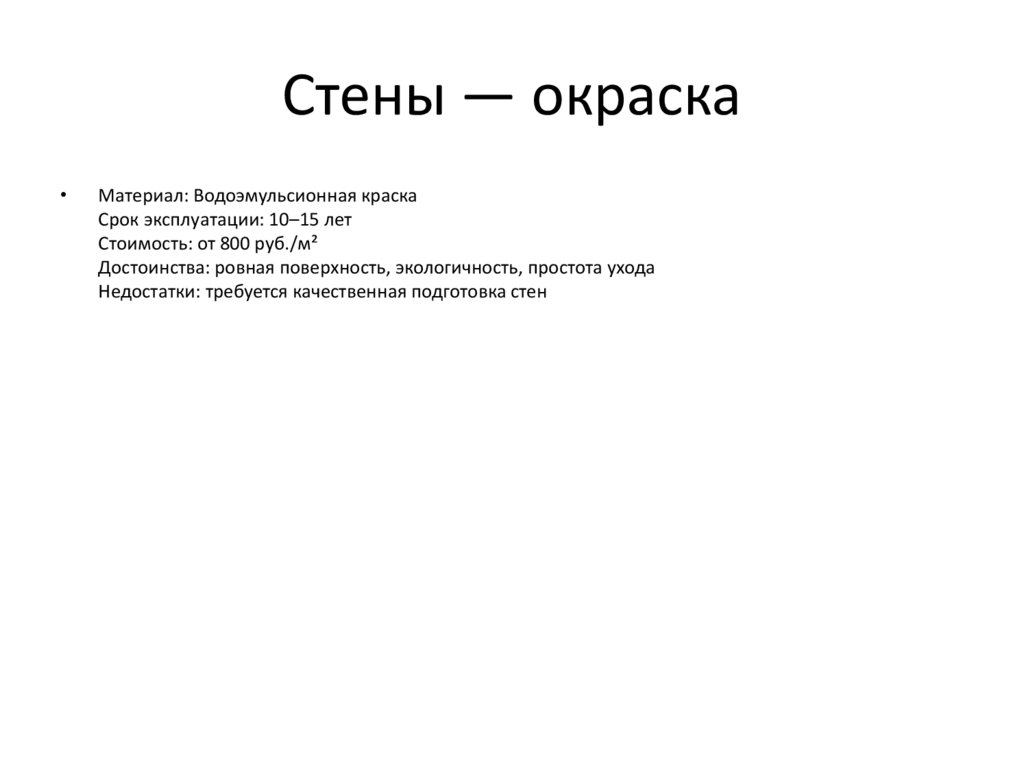 Стены — окраскаМатериал: Водоэмульсионная краска