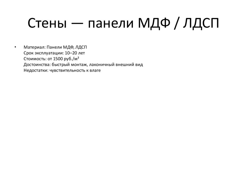 Стены — панели МДФ / ЛДСПМатериал: Панели МДФ, ЛДСП