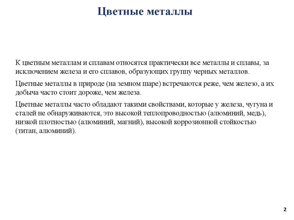 Цветные металлыК цветным металлам и сплавам относятся практически все металлы и сплавы, за