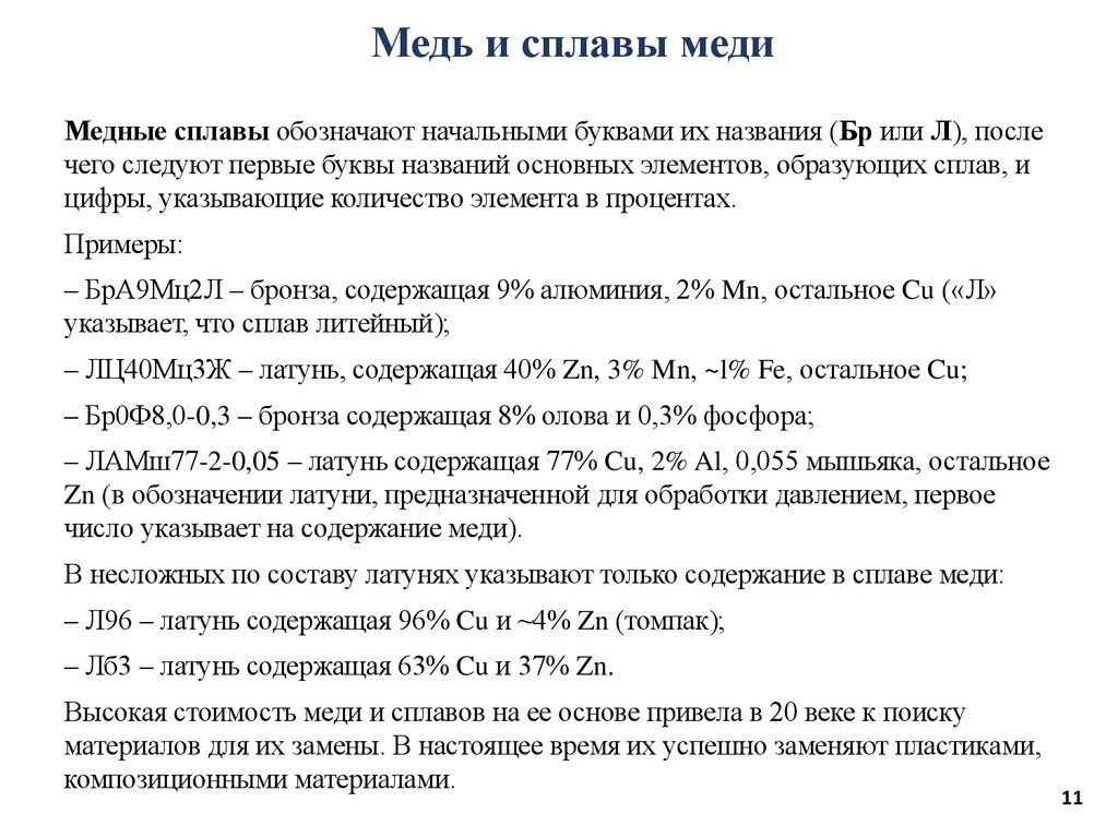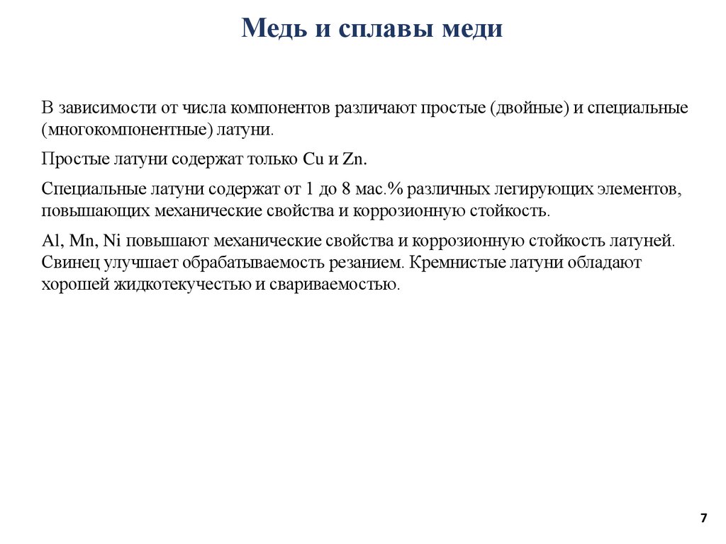 Медь и сплавы медиВ зависимости от числа компонентов различают простые (двойные) и специальные