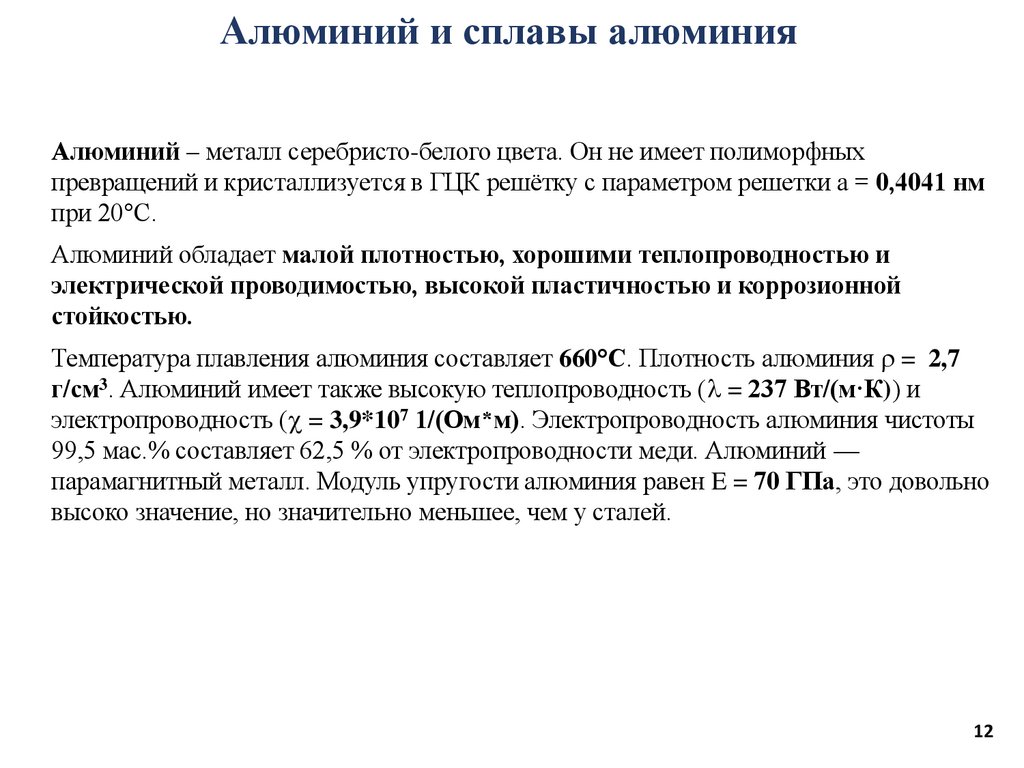 низкой плотностью (алюминий, магний), высокой коррозионной стойкостью