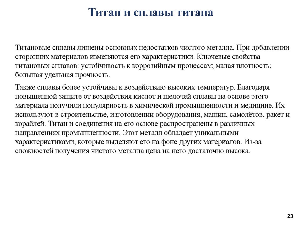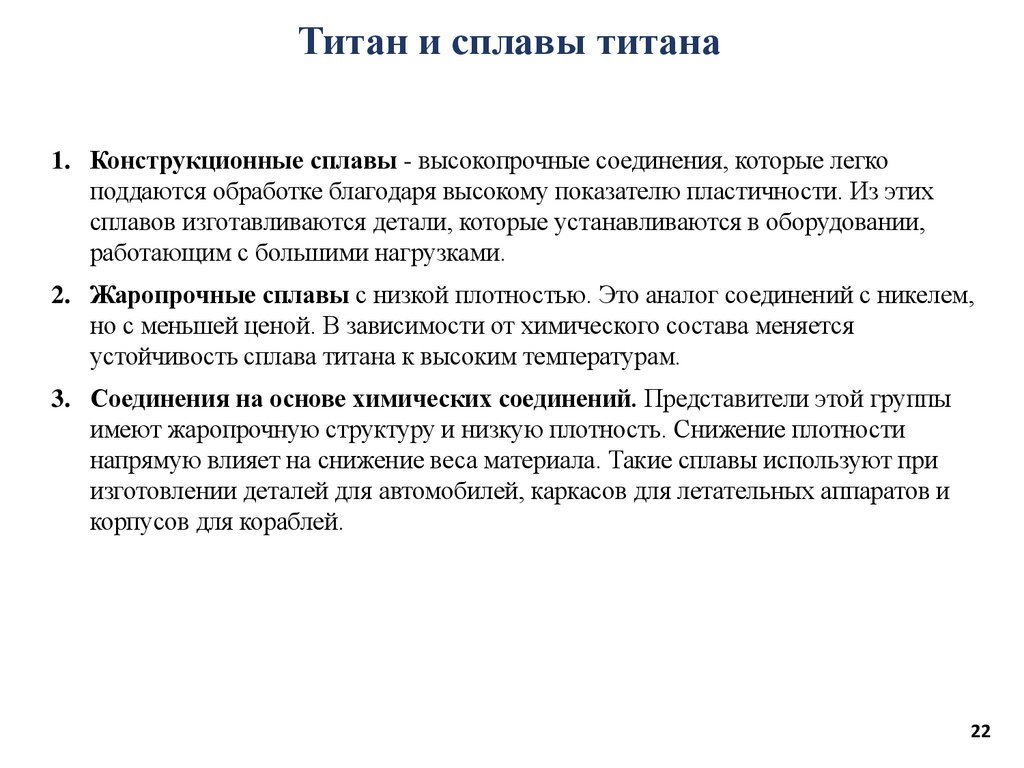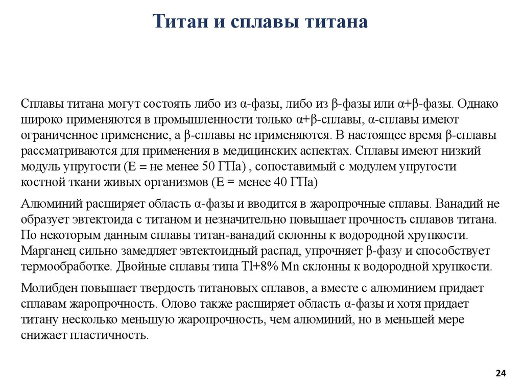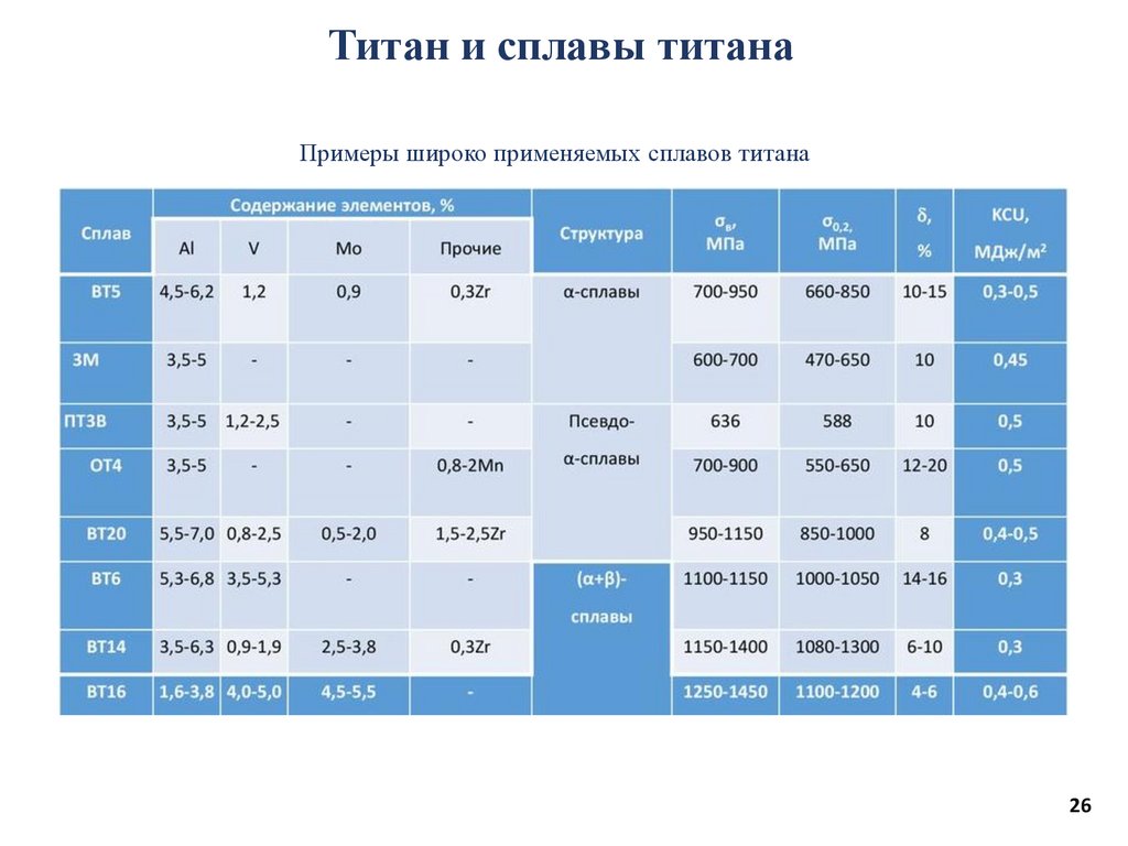 Титан и сплавы титанаПримеры широко применяемых сплавов титана