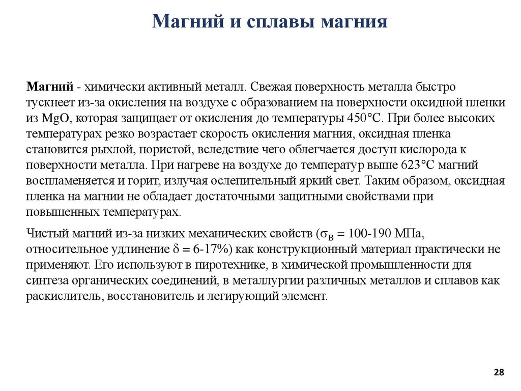 Магний и сплавы магнияМагний - химически активный металл. Свежая поверхность металла быстро