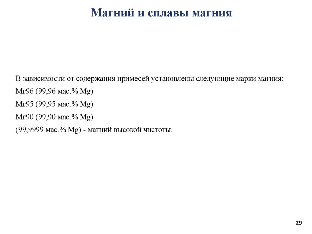 Магний и сплавы магнияВ зависимости от содержания примесей установлены следующие марки магния: