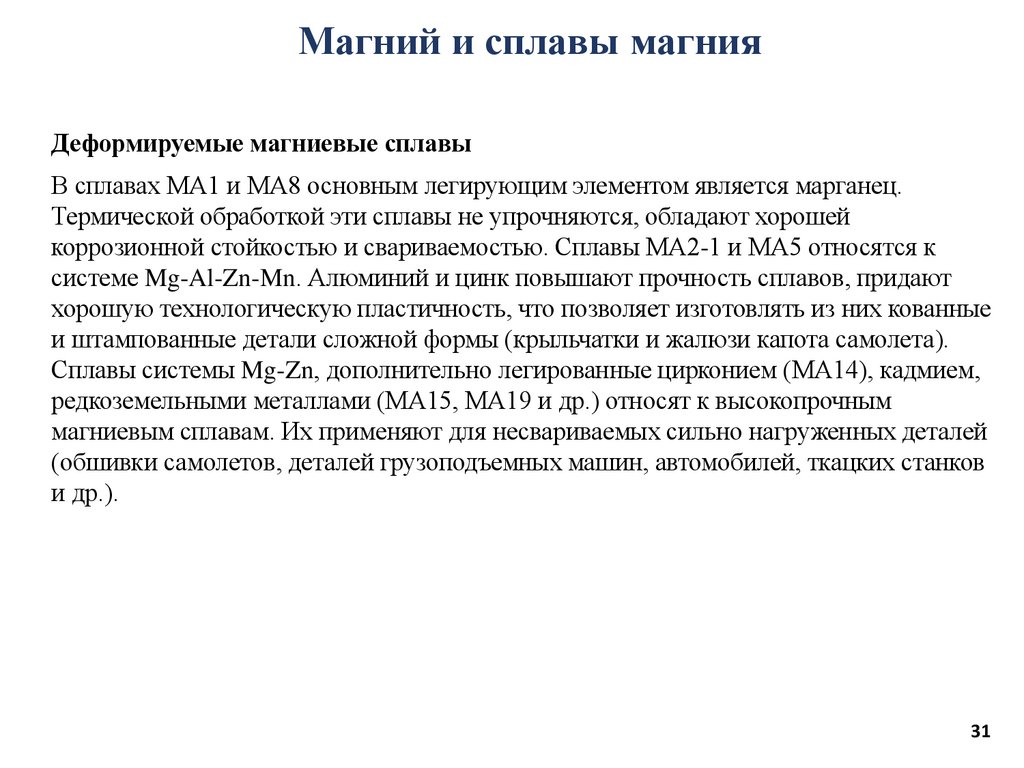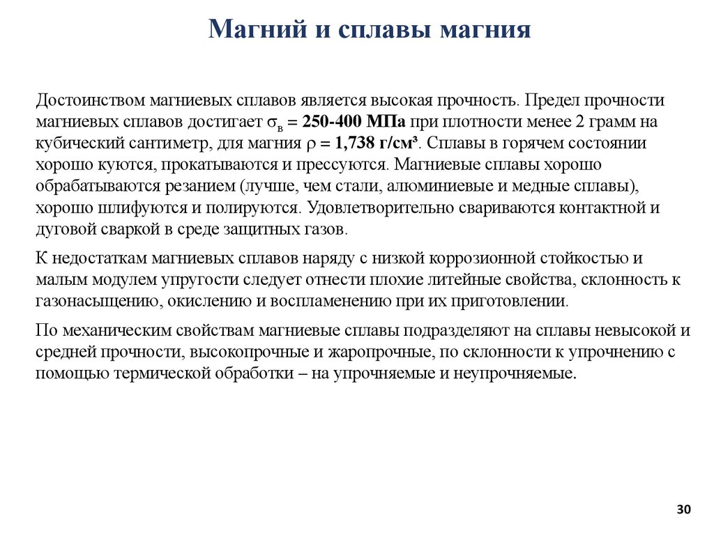 Магний и сплавы магнияБолее высокими технологическими и механическими свойствами обладают сплавы