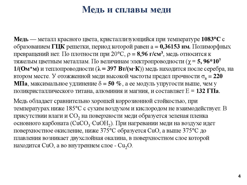 Медь и сплавы медиМедь — металл красного цвета, кристаллизующийся при температуре 1083°С с