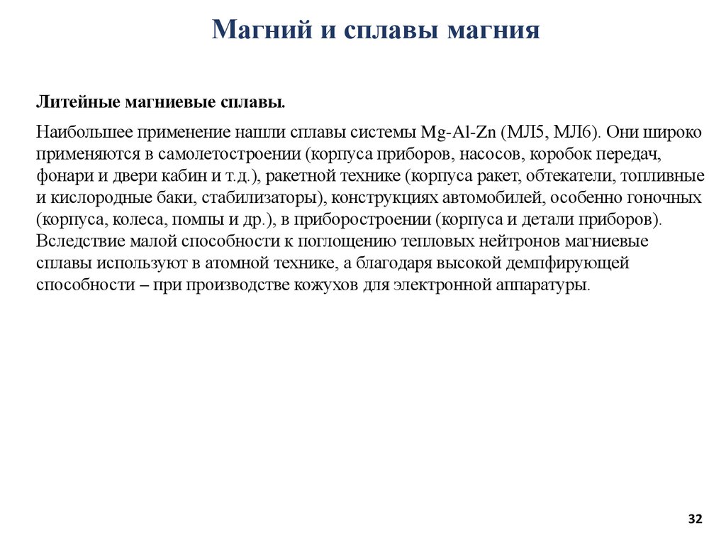 кадмием (МЛ8), редкоземельными металлами (МЛ9, МЛ10). Данные сплавы