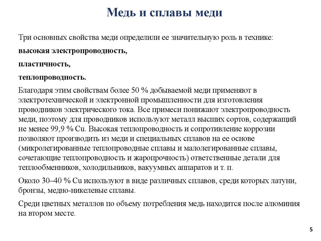 Благодаря этим свойствам более 50 % добываемой меди применяют в