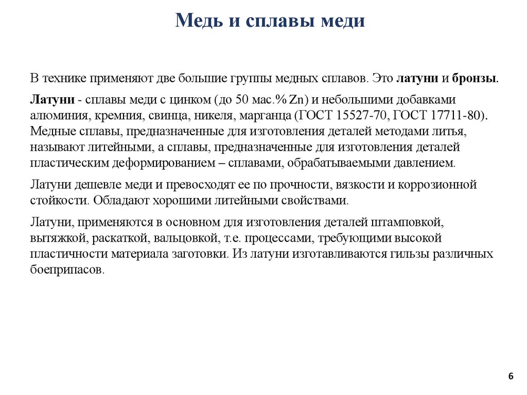Медь и сплавы медиВ технике применяют две большие группы медных сплавов. Это латуни и бронзы.