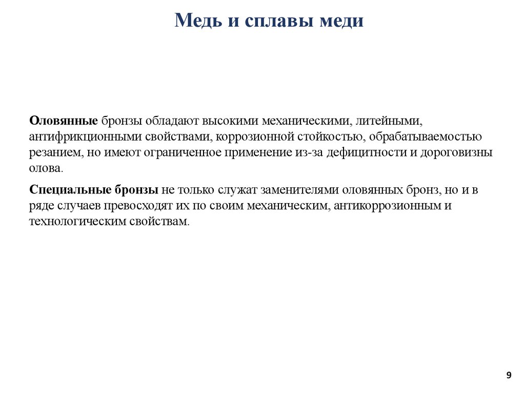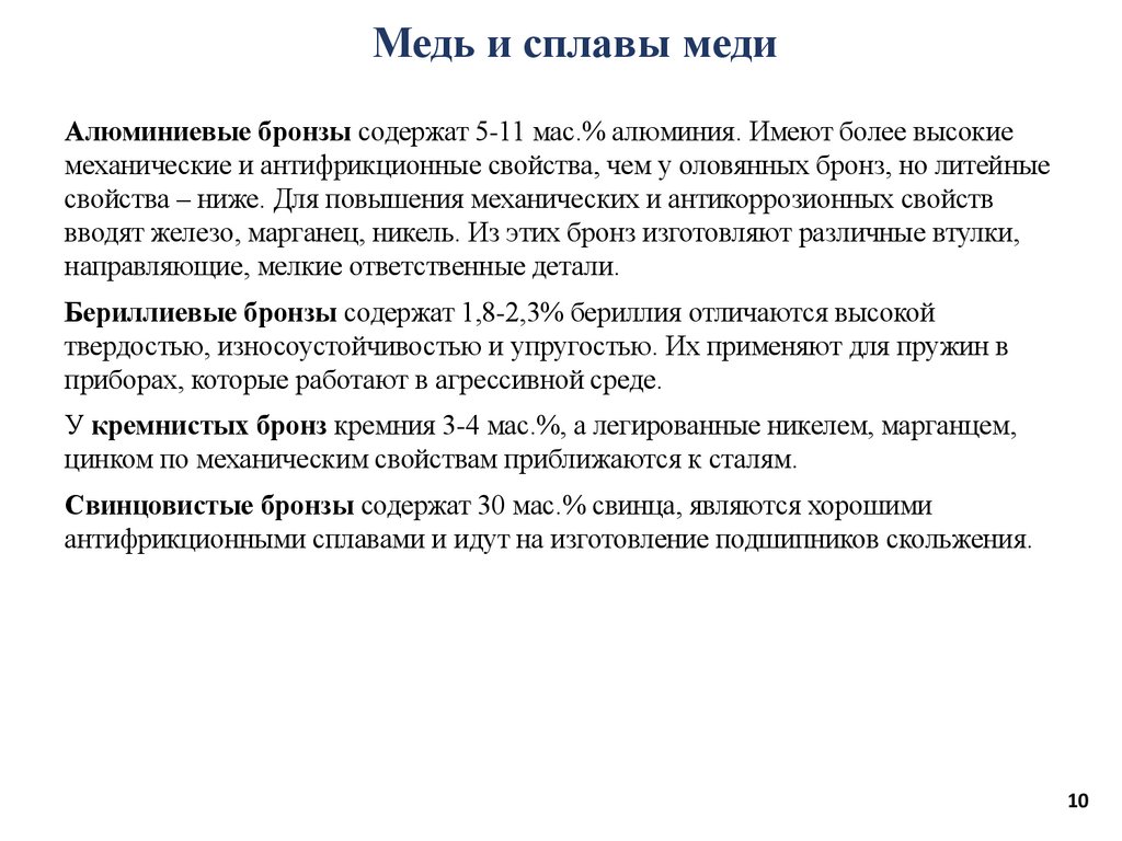 Медь и сплавы медиБронзы – это сплавы меди с оловом (4-33 мас.% Sn), свинцом (до 30 мас.% Pb),